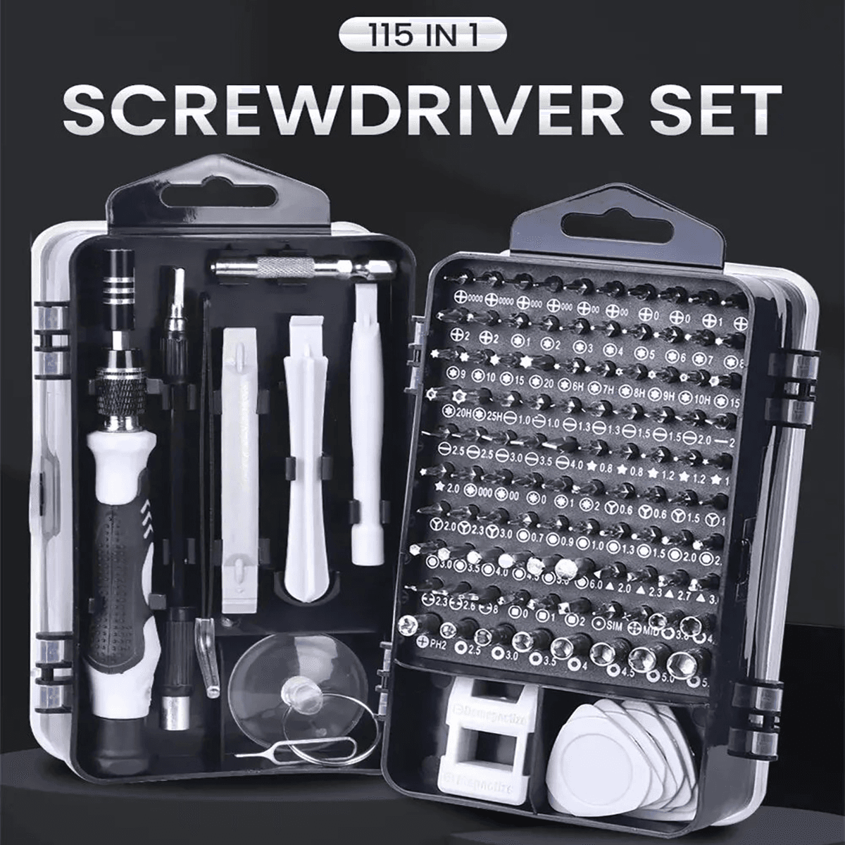 The 115-in-1 Precision Screwdriver Set is a comprehensive and durable magnetic repair tool kit designed to handle delicate and detailed repairs. Ideal for phones, computers, watches, laptops, MacBooks, eyeglasses, and other electronics, this set features a variety of bits and accessories to meet all your repair needs. The compact and organized storage case ensures easy portability and accessibility.