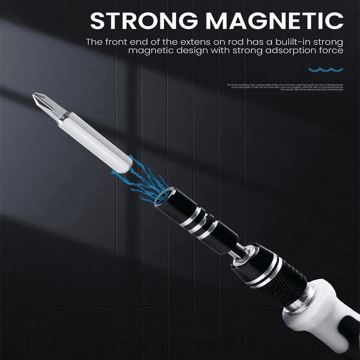 - Magnetic tips make it easier to pick up and secure tiny screws.