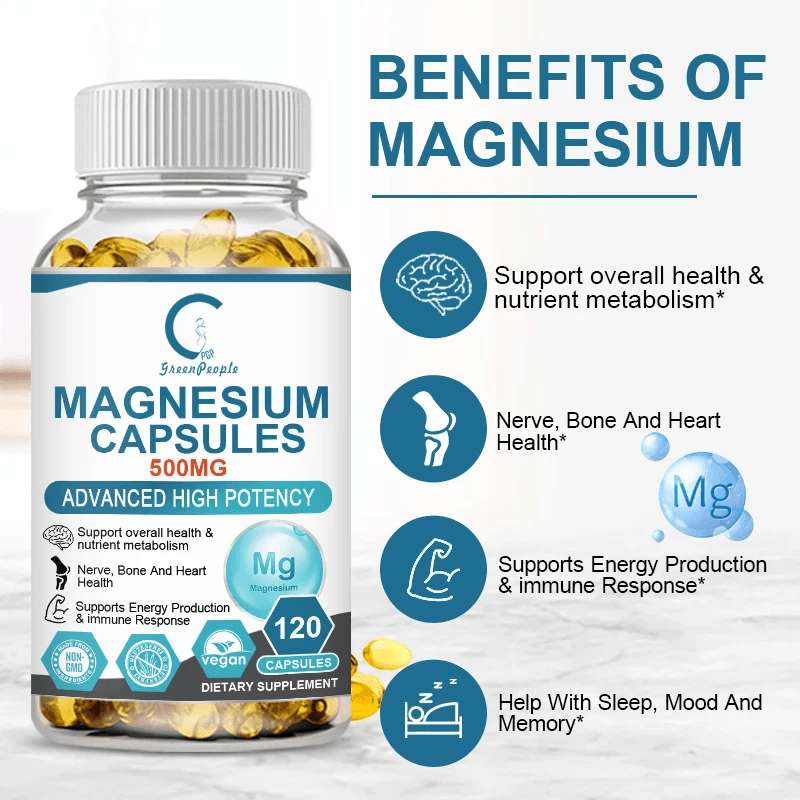 Magnesium helps regulate the body’s production of melatonin, the hormone responsible for controlling your sleep-wake cycle. By promoting deeper, more restful sleep, magnesium capsules can help you fall asleep faster, stay asleep longer, and wake up feeling rejuvenated and refreshed.