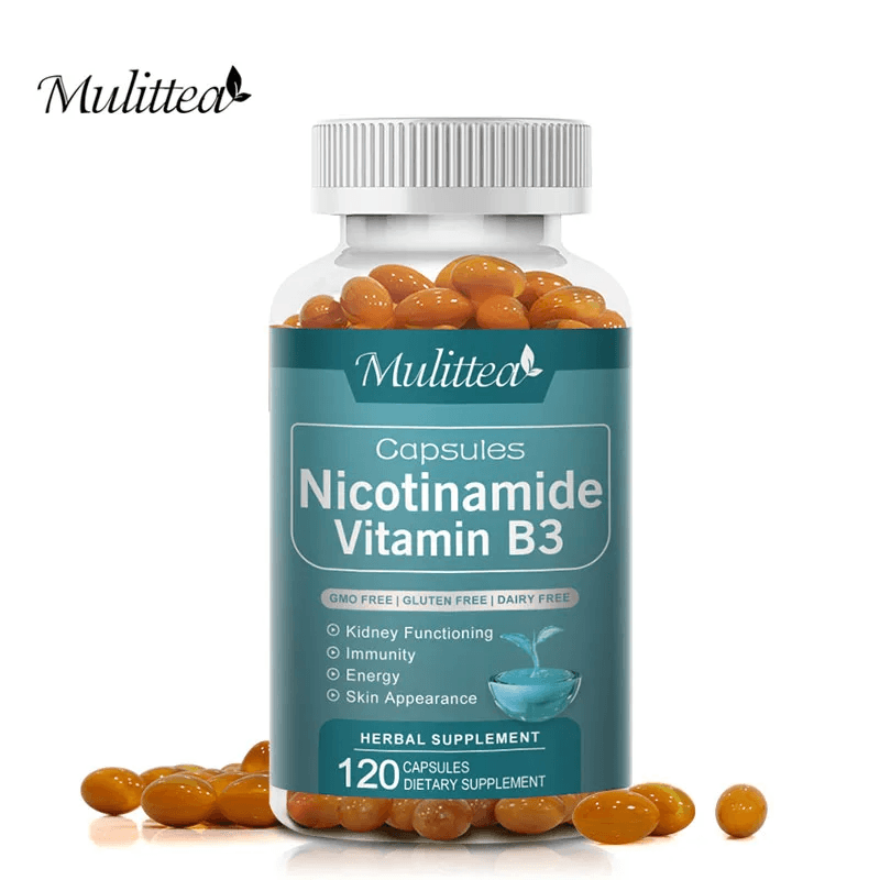 Mulittea Nicotinamide with CoQ10 Vitamin B3 500mg – Energy and Vitality SupportMulittea Nicotinamide with CoQ10 Vitamin B3 500mg offers a synergistic blend of key nutrients to enhance energy metabolism, support cardiovascular health, and promote overall wellness.Key Features:High Potency: Each capsule delivers 500mg of Nicotinamide, providing a substantial dose to support health and well-being.CoQ10 Enrichment: Formulated with Coenzyme Q10, a vital antioxidant that helps convert nutrients into energy and supports heart health.Supports Cellular Health: Nicotinamide plays a crucial role in cellular energy production, DNA repair, and metabolism.Convenient Capsule Form: Easy to take, making it simple to incorporate into your daily routine.Benefits:Enhances Energy Production: Supports the body’s ability to generate energy at the cellular level, helping to reduce fatigue and improve vitality.Promotes Cardiovascular Health: CoQ10 is known for its ability to support heart health by maintaining healthy blood pressure and cholesterol levels.Supports Brain Function: Both Nicotinamide and CoQ10 may contribute to improved cognitive function and mental clarity.Antioxidant Protection: CoQ10 acts as a powerful antioxidant, helping to neutralize free radicals and protect cells from oxidative stress.Skin Health Support: Nicotinamide is recognized for its benefits for skin health, including improving texture and reducing signs of aging.