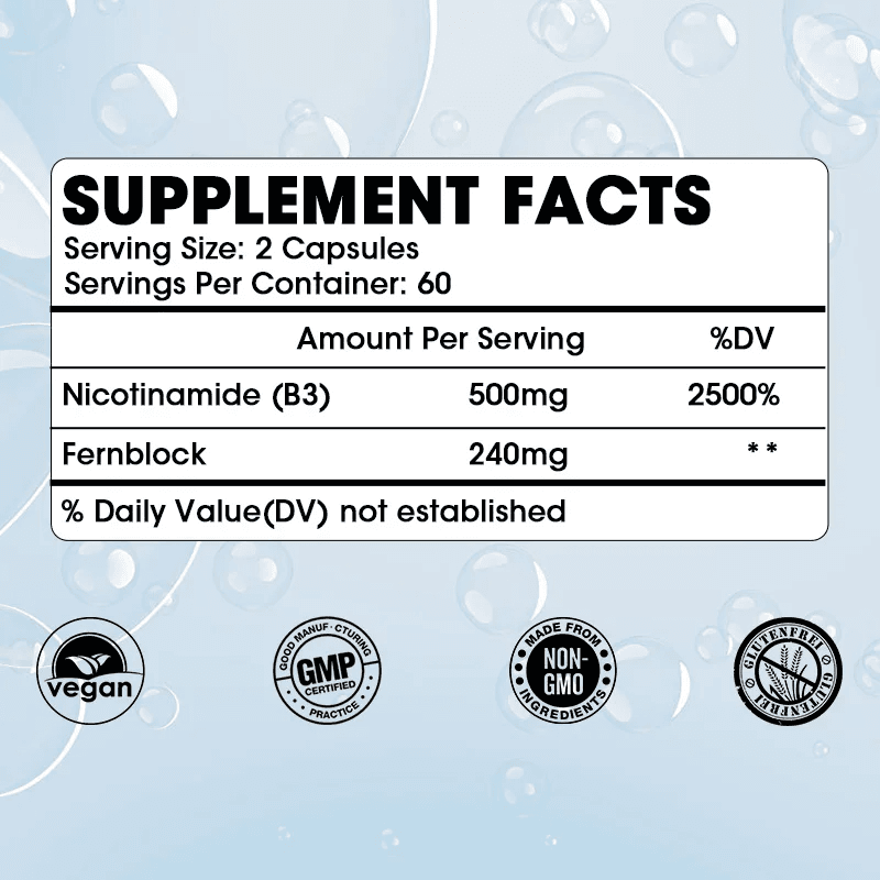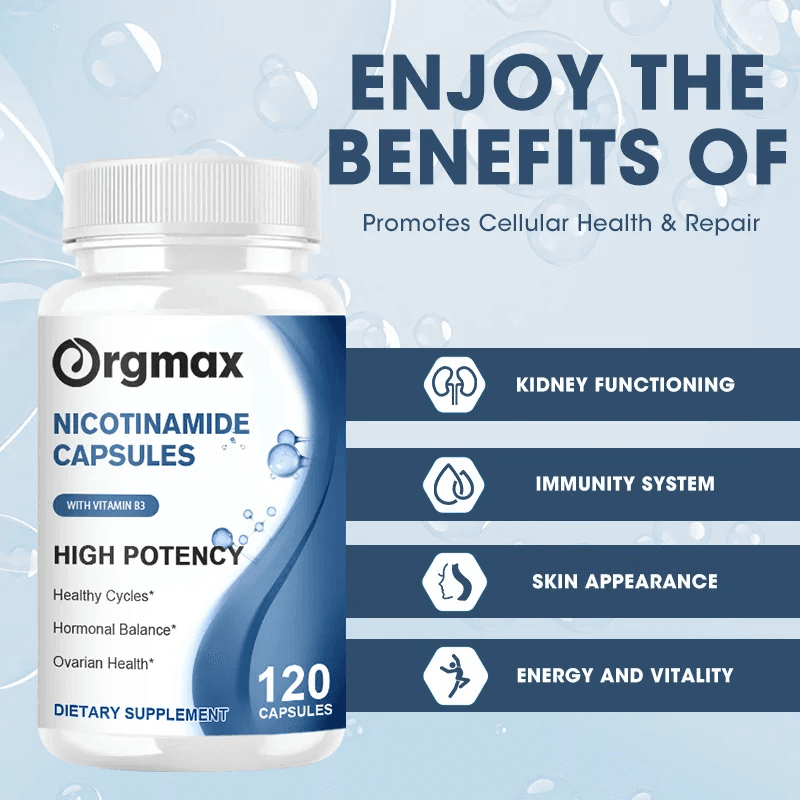 Supports Cellular Repair & Longevity: Nicotinamide aids in the repair of cellular damage, helping cells stay healthy and function optimally. This is crucial for supporting energy levels, vitality, and resilience against stress.